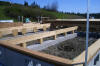The concrete pad is for the 22 sq. ft. theater subwoofer. Our mason wil build the cabinet out of brick. The opening will be under the stairway and will be vented into the listening room.